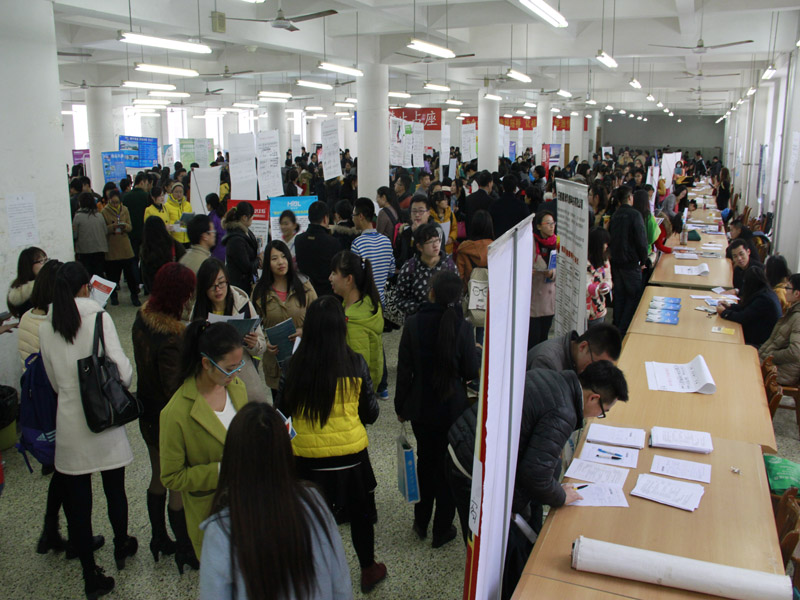 招聘会现场气氛活跃,人头攒动,摩肩接踵。应聘者仔细阅读企业单位的招聘工作、工资待遇并结合自己的实际情况后,积极主动向用人单位提交了自己精心准备的简历,并热情和招聘人交谈,询问其未来发展方向和正式工作后的工资待遇。据悉,用人单位除要求应届毕业生拥有本科学历以外,更注重学生的学习能力、沟通能力、团队合作精神,并且要求工作人员工作踏实努力,能承受工作压力。这就要求大学生调整自己的就业观念,客观全面认识自己,提高自己的能力,以谋取一份与自己专业对口的工作。