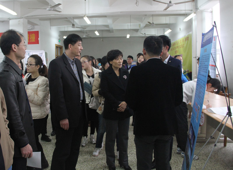我校副校长、日照校区管委会主任马东骅,副校长康淑敏,纪委书记、日照校区管委会副主任郭辰夫在相关部门负责人的陪同下视察了招聘现场,与各单位代表亲切交流并对参与应聘的大学生进行现场指导。