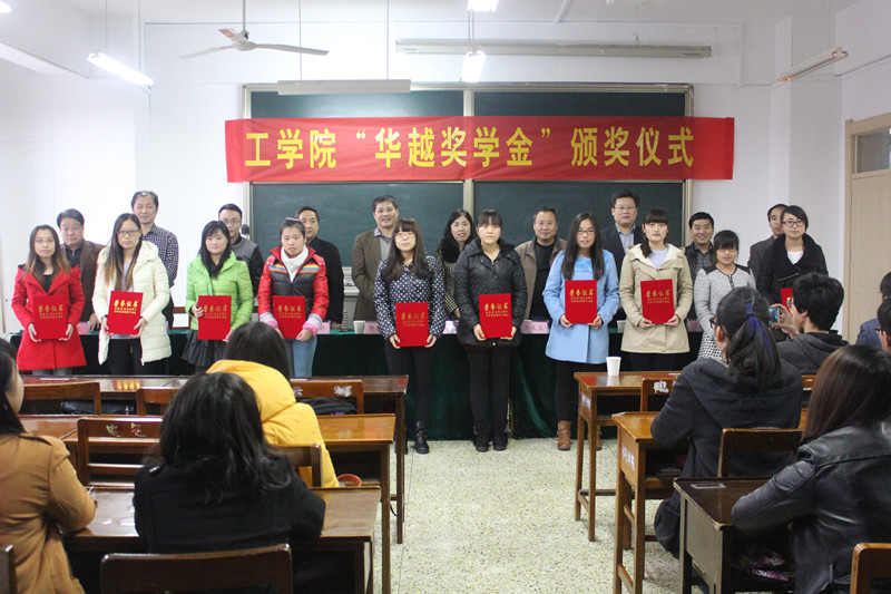 11月27日下午,工学院华越奖学金颁奖仪式举行。党委常委、纪委书记郭辰夫,山东华越彩印包装有限公司总经理李建英出席了颁奖仪式,工学院、学生工作办公室等负责人参加了仪式。