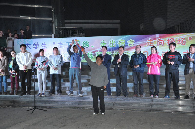 为增强学生身体素质、促进学生健康成长,10月30日晚,我校大学生“走下网络、走出宿舍、走向操场”主题群众性课外体育锻炼活动月启动。党委副书记孙文亮及学生工作处、团委、保卫处等部门负责人出席了仪式,各学院团总支书记和学生代表参加了仪式。