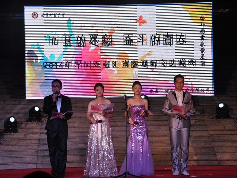 副校长康淑敏,学生工作处、校团委、济宁预备役师二团政治处负责人以及各学院党总支副书记、新生辅导员老师,与2014级全体新生一起观看了晚会。