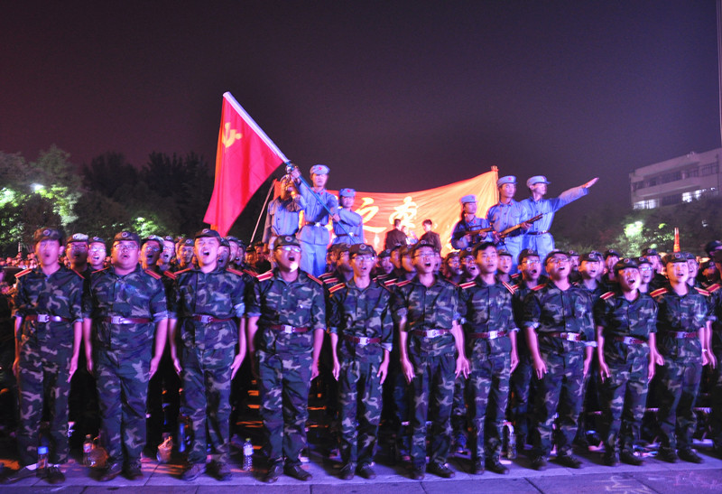 920日晚,孔子文化广场灯光璀璨,红旗招展,以“九月的迷彩奋斗的青春”为主题的2014级军训合唱汇演暨迎新文艺晚会在这里隆重举行。