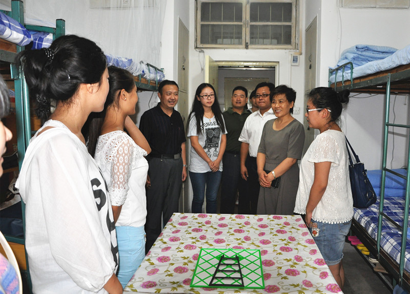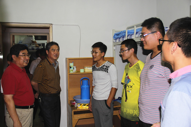 9月7日下午,带着对2014级新同学的牵挂,校领导傅永聚、孙文亮、马东骅、康淑敏带领学生工作处、保卫处、校区管理办公室、校区学生工作办公室、后勤管理处等有关部门负责人,分别深入两校区新生宿舍,看望慰问新同学,送上中秋节的祝福,对他们来校学习生活表示欢迎,勉励他们互相关心帮助,积极进取,以优异的成绩报答家长的养育之恩。