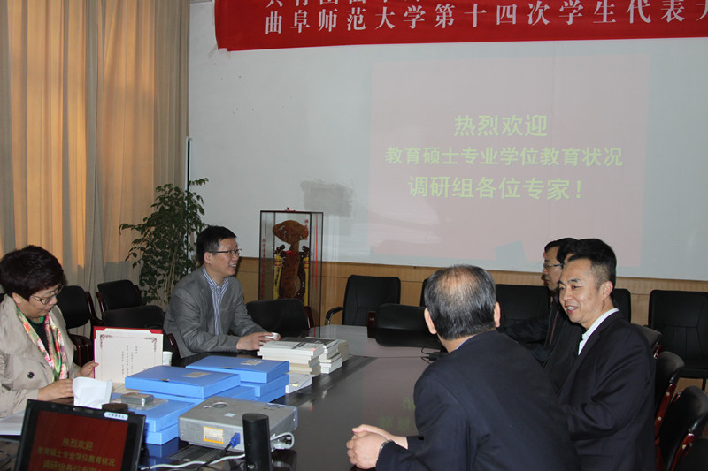 为全面、客观和具体了解我校教育硕士专业学位教育研究生培养工作状况,2014年4月15日-16日,全国教育专业学位研究生教育指导委员会专家组莅临我校,就教育硕士教育的组织管理、培养方案、教师队伍、课程教学、实践环节、学位论文、本校教育硕士专业学位研究生教育的经验及特色等七个方面的相关情况进行实地调研。专家组由华中师范大学教育学院院长涂艳国、全国教育专业学位研究生教育指导委员会秘书长张斌贤、哈尔滨师范大学副校长臧淑英和北京大学教育学院院长文茅东等组成。