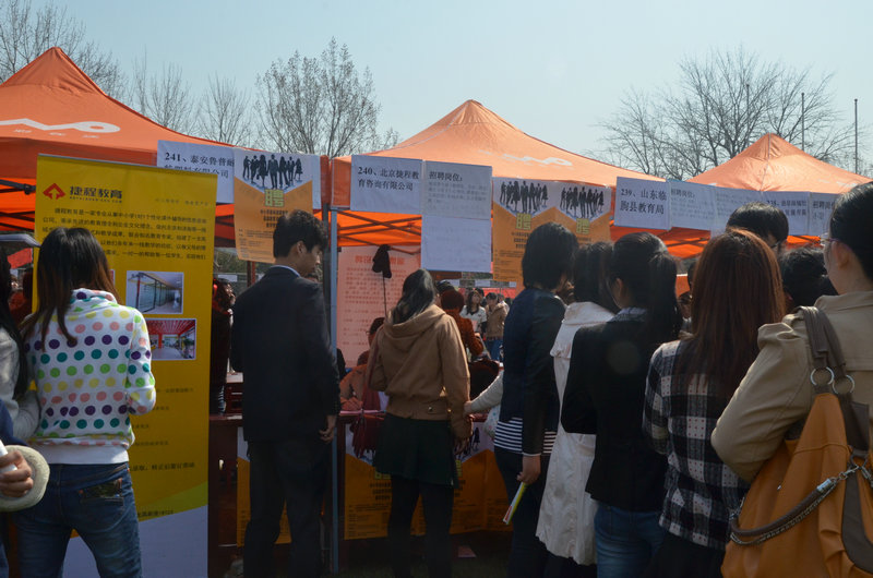 为保障本次供需见面会的成功举办,学校广泛邀请用人单位参会,来自省内外410多家用人单位来校招聘,其中包括威海环翠区教育局、昌邑市教育局等10家县市教育局,昌乐二中、单县一中等80多家学校和60多家培训机构等,提供就业岗位12000多个,吸引了15000余名毕业生前来应聘。在供需见面会现场,学校发放了《毕业生满意度调查问卷》,以了解我校毕业生在用人单位的工作情况,为下一步学生培养和就业指导提供参考和依据;学校从全校范围内选拔了260名志愿者进行会场服务,他们规范着装,统一佩戴标识,为用人单位提供咨询和引导服务,保证了供需见面会的有序进行,给用人单位留下了深刻印象;学校与曲阜市公安局、曲阜市西关派出所等单位协同合作,维护校内外交通、安全秩序,为供需见面会提供了安全保障。