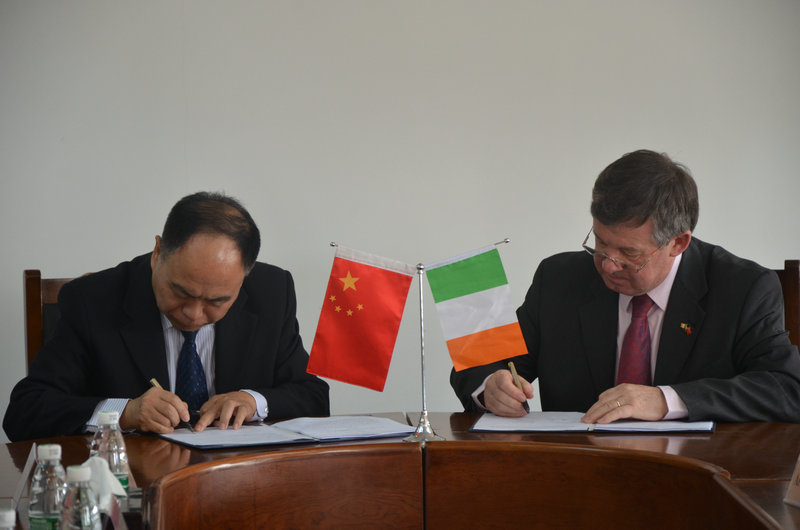 傅永聚与MichaelMurphy分别代表两校,共同签署了《华体会官方网页版_华体会(中国)与爱尔兰科克大学学生联合培养协议》。