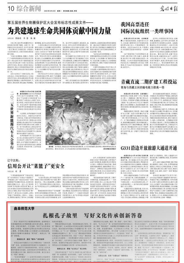 9月29日,《光明日报》刊发题为《华体会官方网页版_华体会(中国):扎根孔子故里 写好文化传承创新答卷》的文章,报道了学校建校70年来与时偕行、守正创新,弘扬中华优秀传统文化的特色做法与经验。