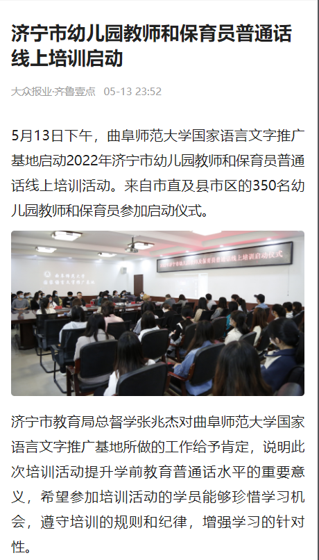 【齐鲁壹点】济宁市幼儿园教师和保育员普通话线上培训启动
