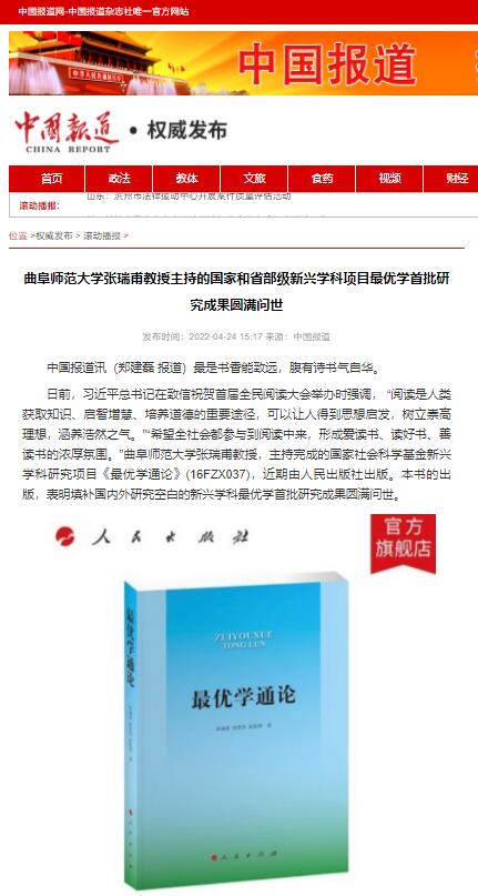 【中国报道】华体会官方网页版_华体会(中国)张瑞甫教授主持的国家和省部级新兴学科项目最优学首批研究成果问世