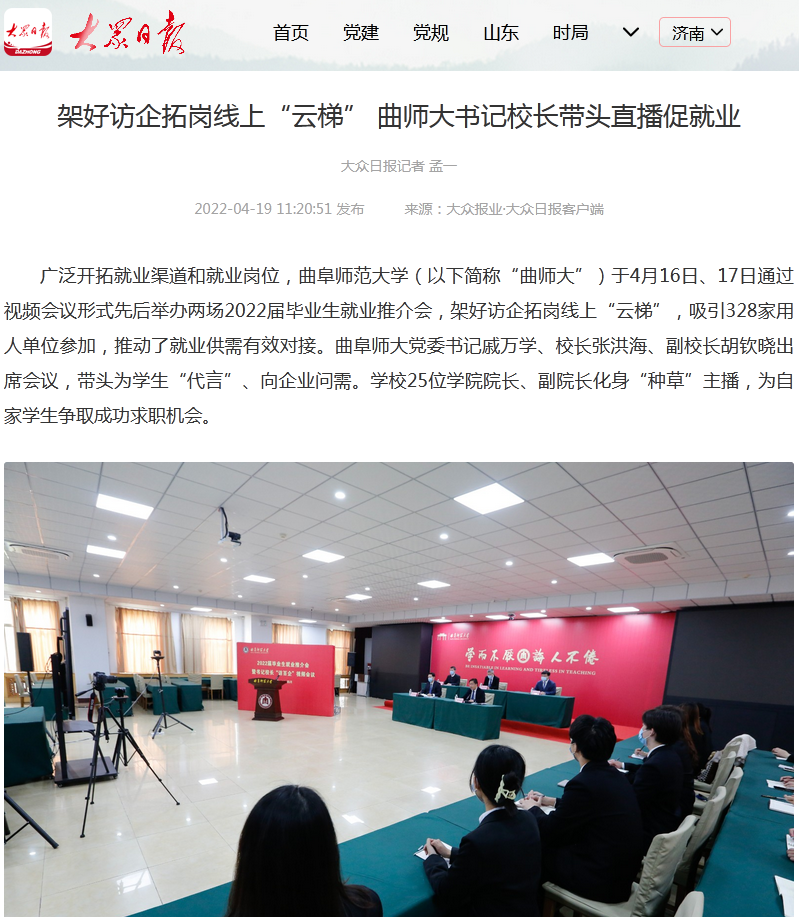 【大众日报】架好访企拓岗线上“云梯” 曲师大书记校长带头直播促就业