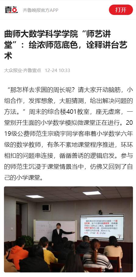 【齐鲁壹点】曲师大数学科学学院“师艺讲堂”:绘浓师范底色,诠释讲台艺术