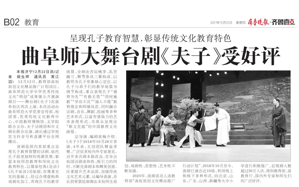 【齐鲁晚报】曲阜师大舞台剧《夫子》受好评
