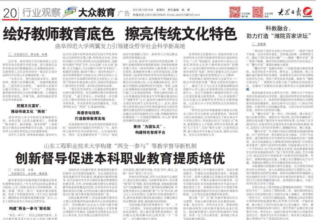 【大众日报】绘好教师教育底色 擦亮传统文化特色——华体会官方网页版_华体会(中国)两翼发力引领建设哲学社会科学新高地