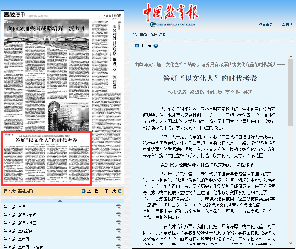 中国教育报:曲阜师大答好“以文化人”的时代考卷