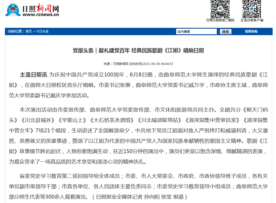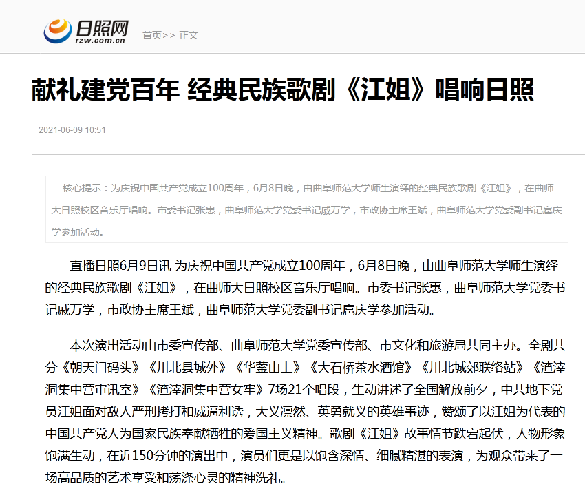 日照网:华体会官方网页版_华体会(中国)师生演绎经典民族歌剧《江姐》献礼建党百年