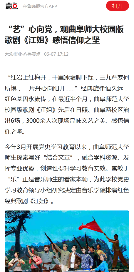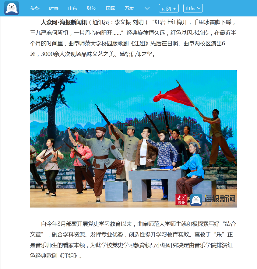 齐鲁晚报:“艺”心向党,观曲阜师大校园版歌剧《江姐》感悟信仰之坚