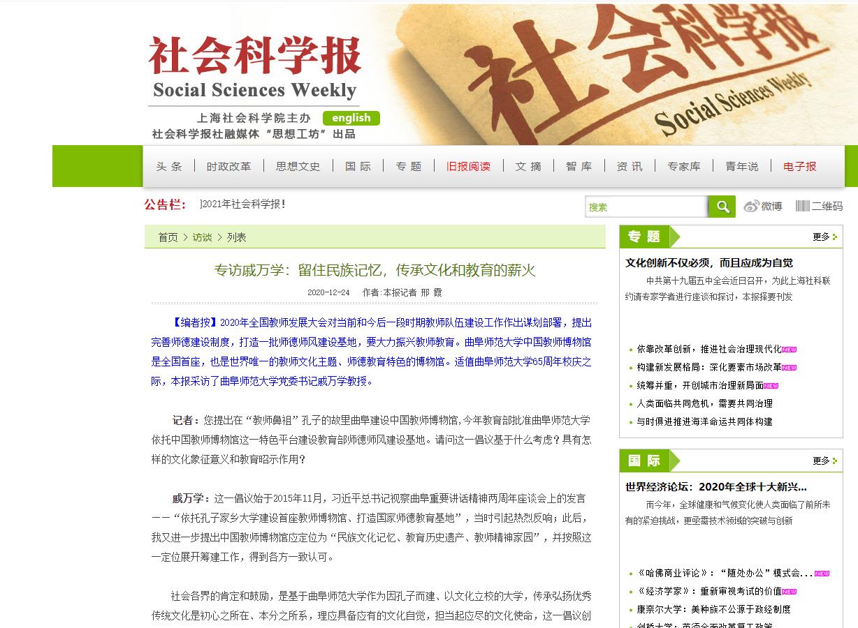 社会科学报 专访戚万学:留住民族记忆,传承文化和教育的薪火