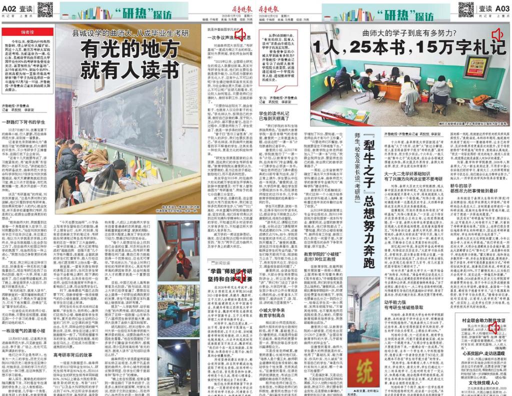 《齐鲁晚报》推出三个专版深度报道曲阜师大淳厚学风