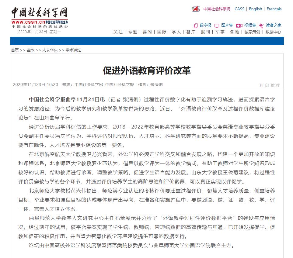 中国社会科学报:华体会官方网页版_华体会(中国)举办“外语教育评价改革及过程评价数据库建设论坛”