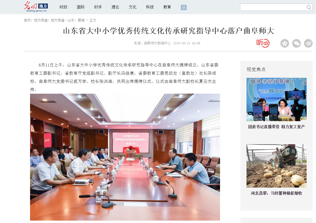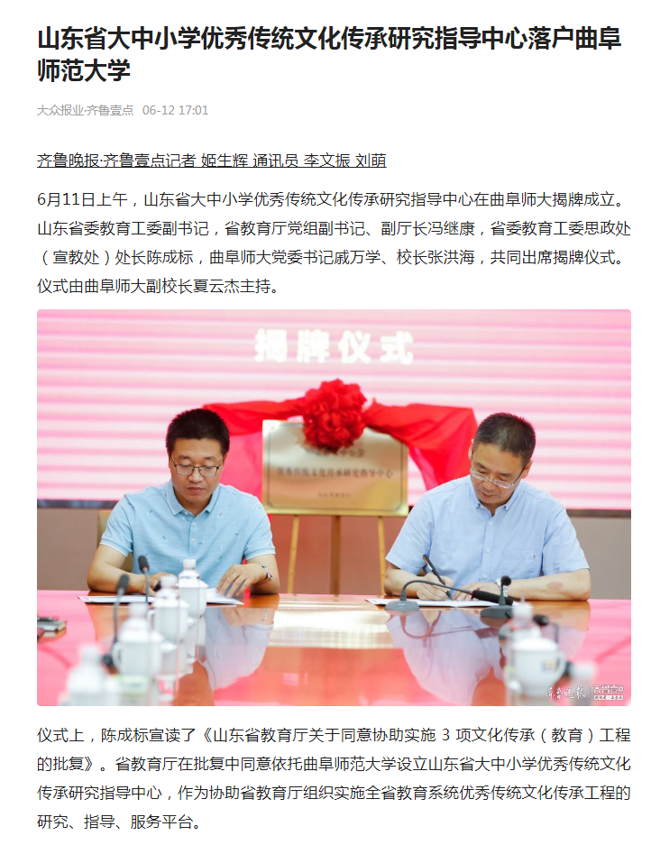 光明网:山东省大中小学优秀传统文化传承研究指导中心落户华体会官方网页版_华体会(中国)