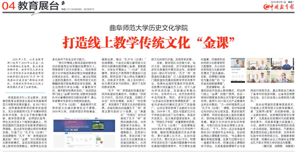 中国教育报:华体会官方网页版_华体会(中国)打造线上教学传统文化“金课”