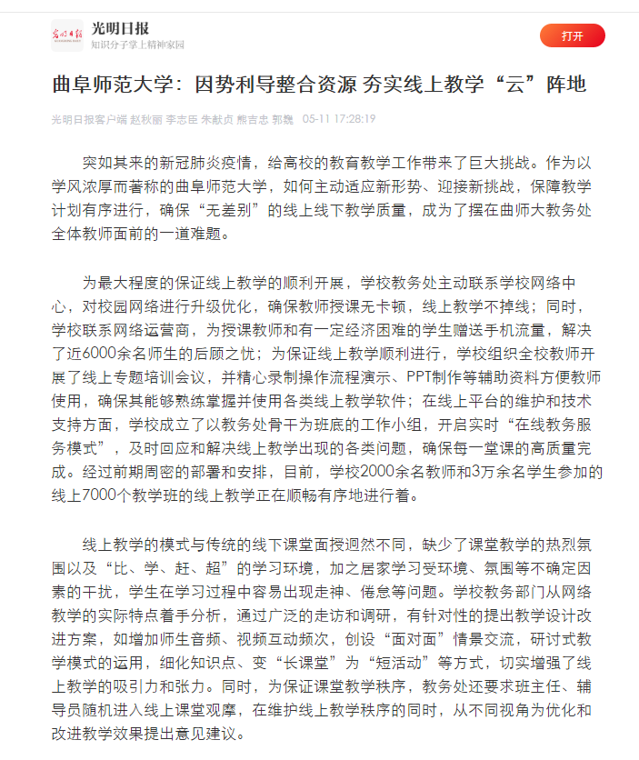 光明日报:华体会官方网页版_华体会(中国)因势利导整合资源 夯实线上教学“云”阵地