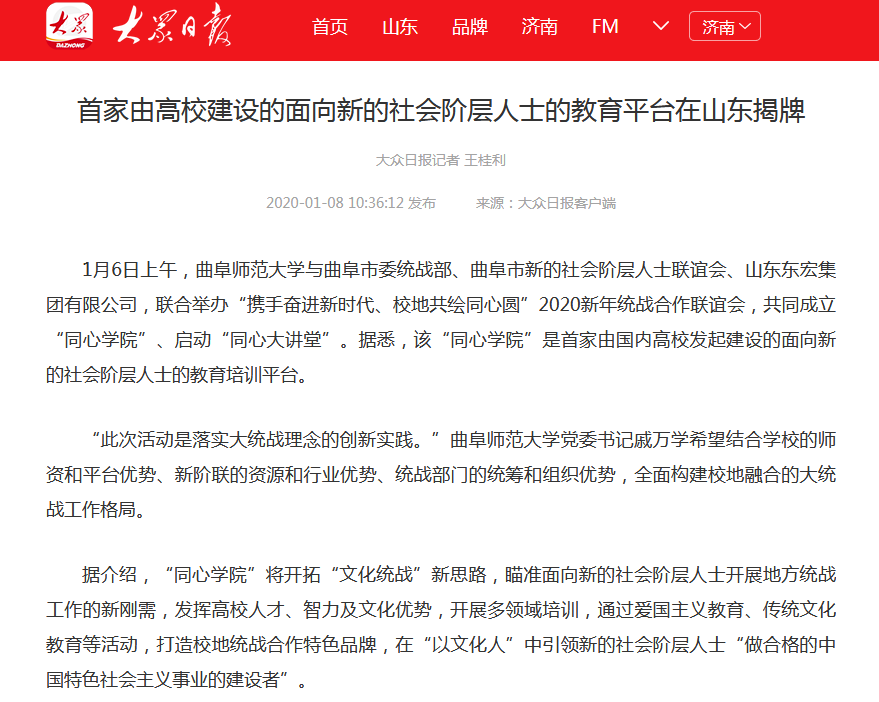 大众日报:华体会官方网页版_华体会(中国)成立“同心学院”