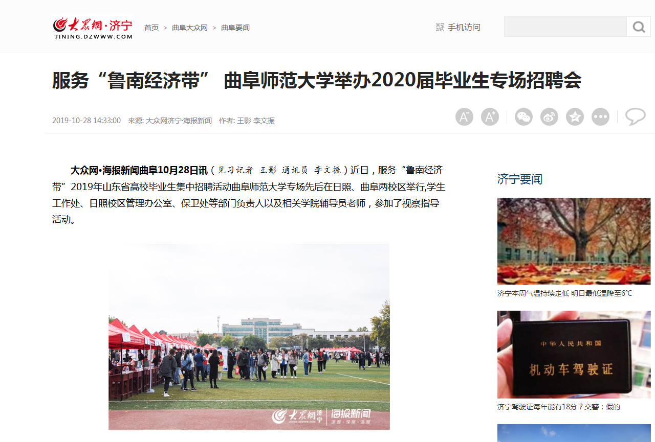 大众网:服务“鲁南经济带” 华体会官方网页版_华体会(中国)举办2020届毕业生专场招聘会