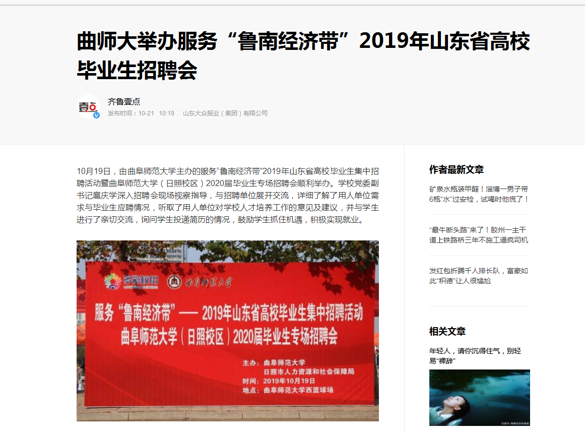 齐鲁壹点:曲师大举办服务“鲁南经济带”2019年山东省高校毕业生招聘会