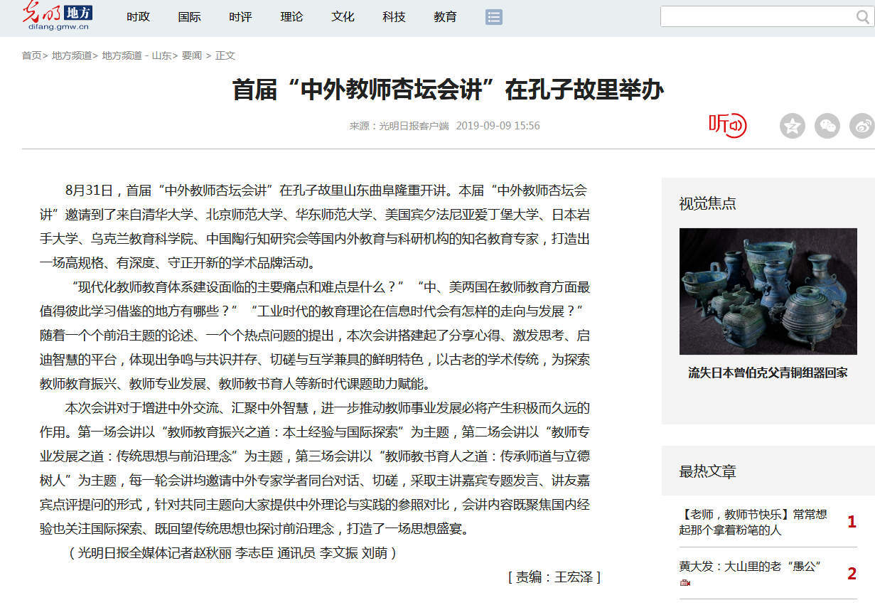 光明网:首届“中外教师杏坛会讲”在孔子故里举办