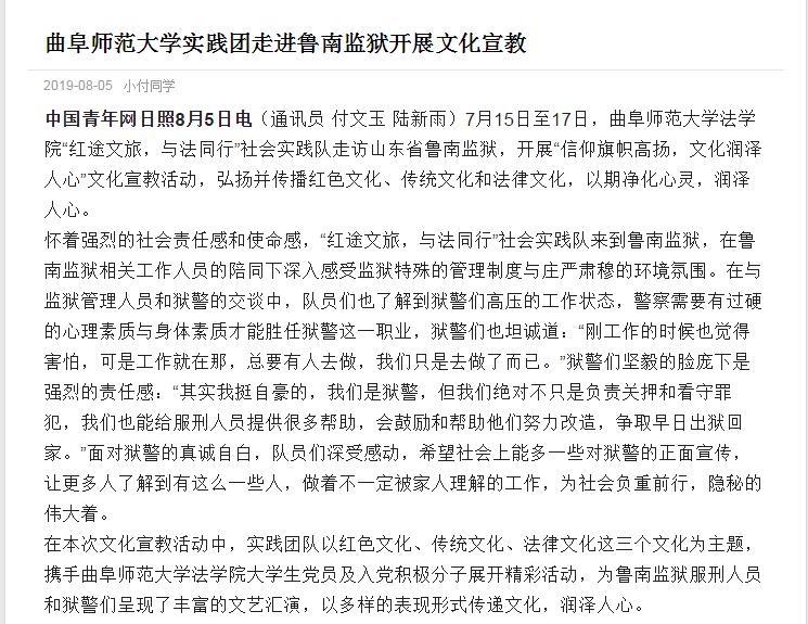 中国青年网:华体会官方网页版_华体会(中国)法学院实践团走进鲁南监狱开展文化宣教