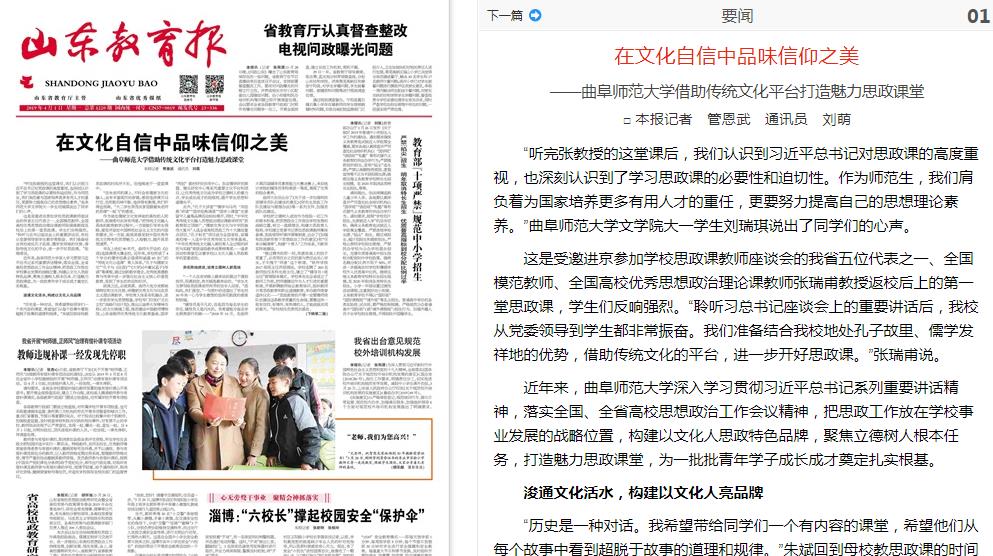 山东教育报:在文化自信中品味信仰之美——华体会官方网页版_华体会(中国)借助传统文化平台打造魅力思政课堂