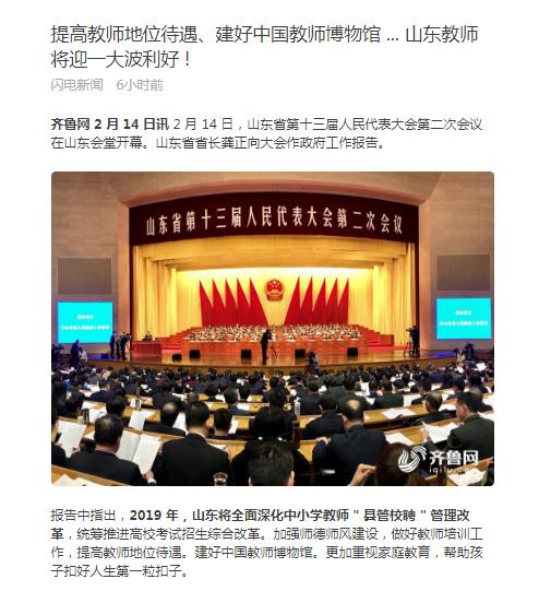 齐鲁网:山东省政府工作报告:建好中国教师博物馆
