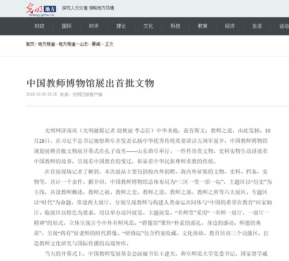 光明网:中国教师博物馆展出首批文物