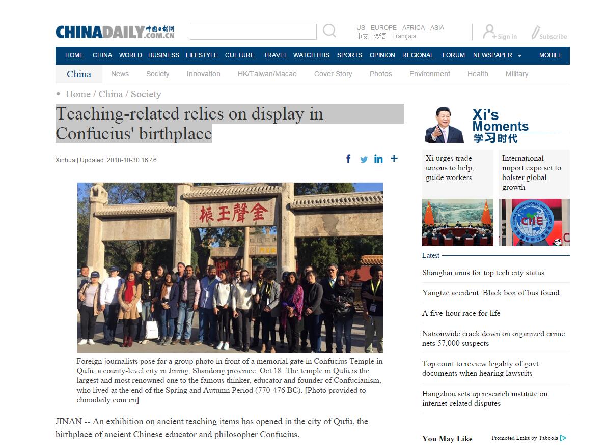 中国日报:Teaching-related relics on display in Confucius' birthplace