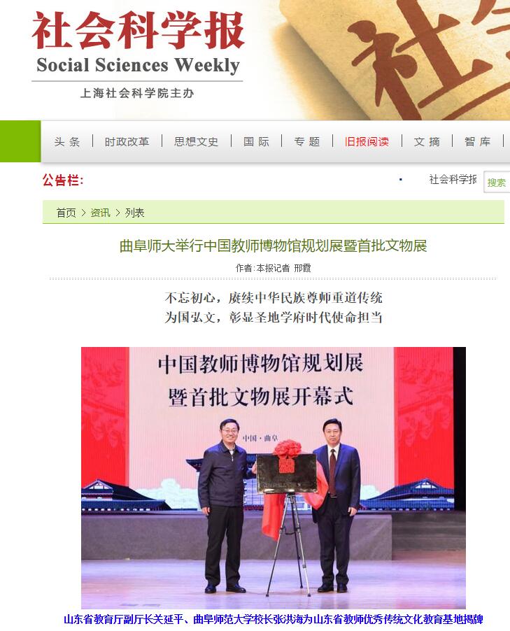 社会科学报:曲阜师大举行中国教师博物馆规划展暨首批文物展