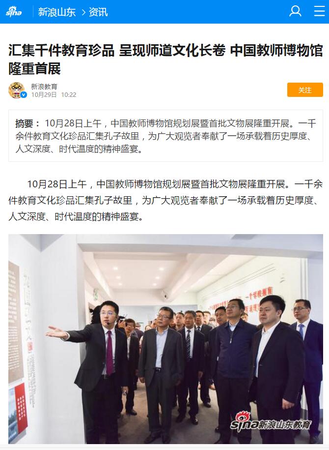 新浪网:汇集千件教育珍品 呈现师道文化长卷 中国教师博物馆隆重首展