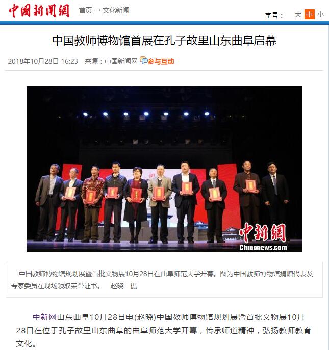 中国新闻网:中国教师博物馆首展在孔子故里山东曲阜启幕