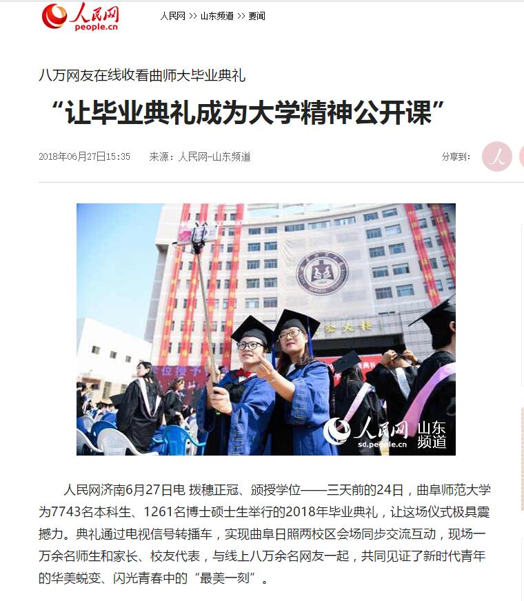 人民网:八万网友在线收看曲师大毕业典礼 “让毕业典礼成为大学精神公开课”