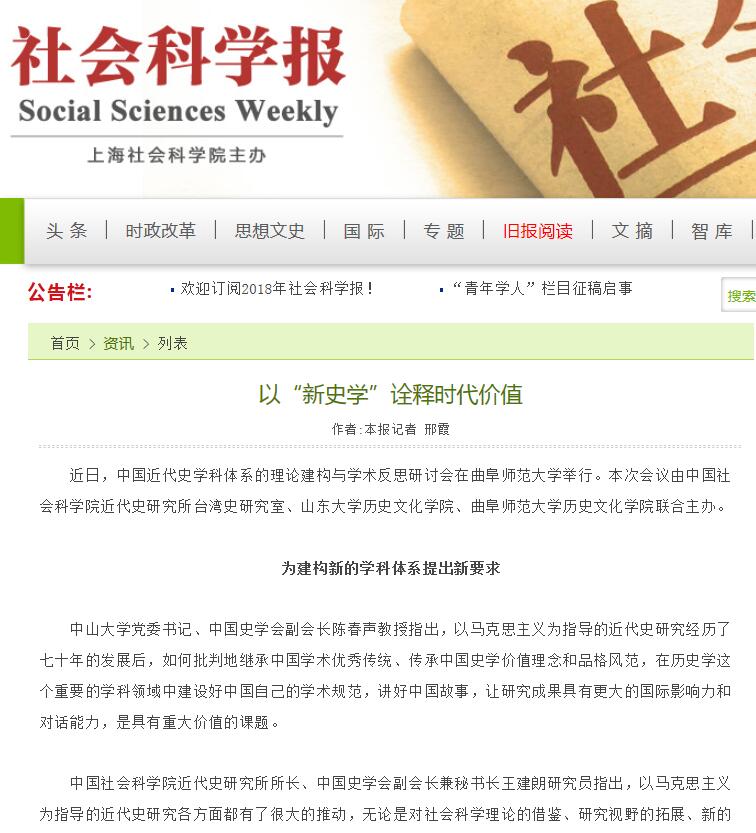 中国社科报:以“新史学”诠释时代价值