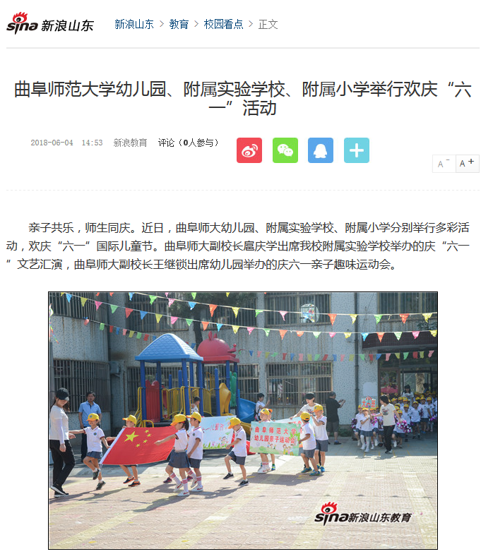 新浪网:曲师大幼儿园举办亲子趣味活动欢庆六一
