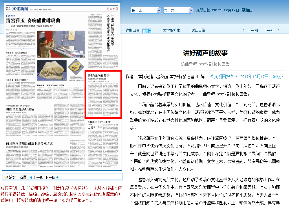 光明日报:讲好葫芦的故事——访华体会官方网页版_华体会(中国)副校长扈鲁