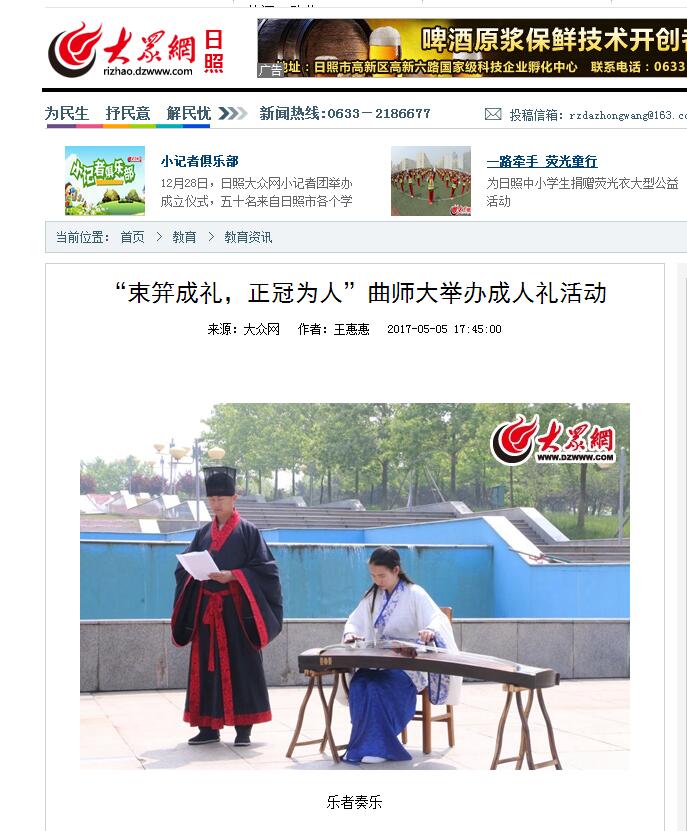 大众网:“束笄成礼,正冠为人”曲师大举办成人礼活动