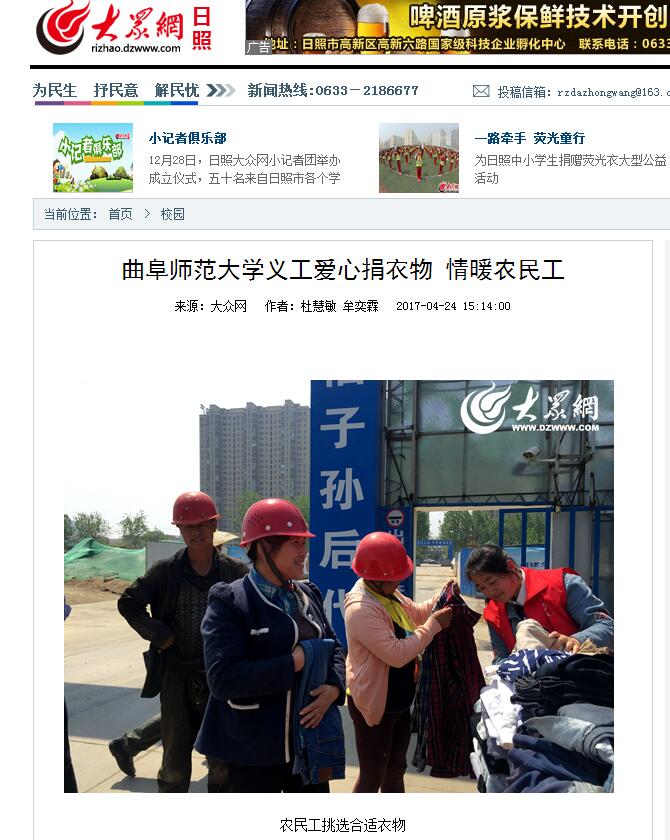 大众网:华体会官方网页版_华体会(中国)义工爱心捐衣物 情暖农民工