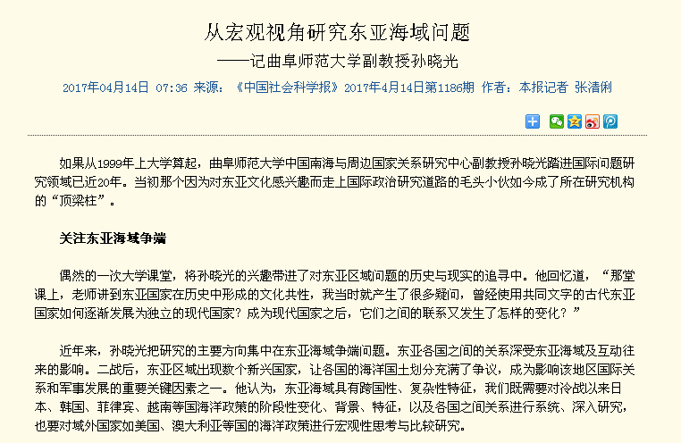中国社会科学报:从宏观视角研究东亚海域问题——记华体会官方网页版_华体会(中国)副教授孙晓光