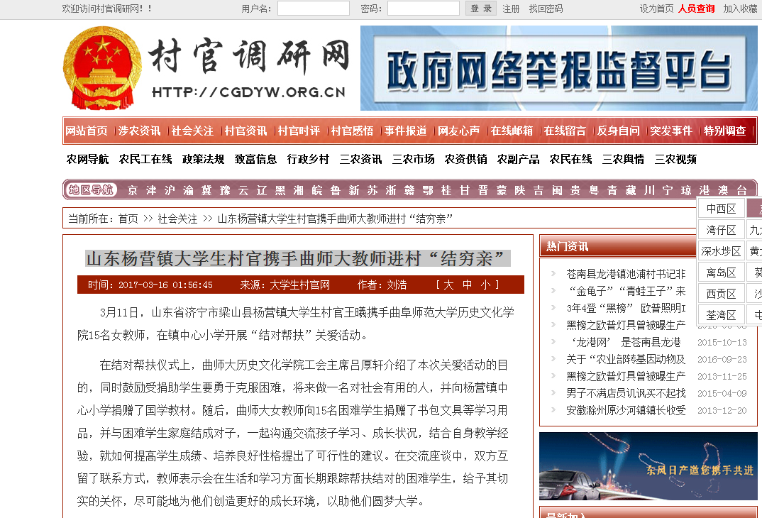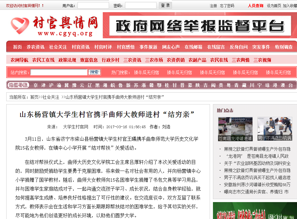 媒体关注历史文化学院女教工到梁山县传播廉政文化,结对爱心帮扶