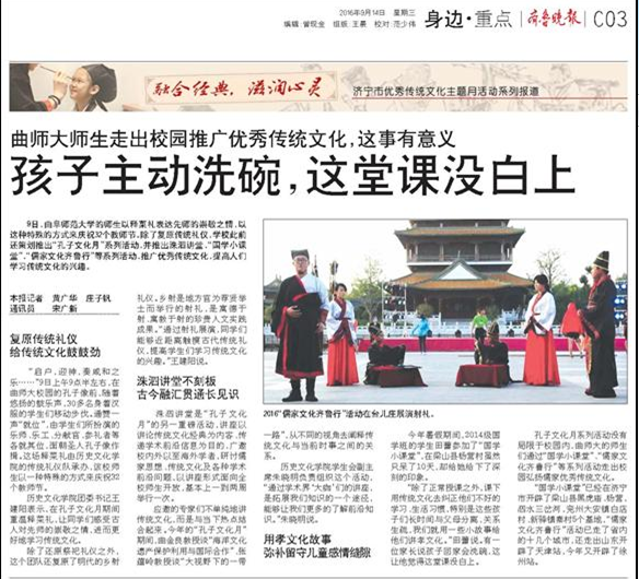 齐鲁晚报:曲师大师生走出校园推广优秀传统文化