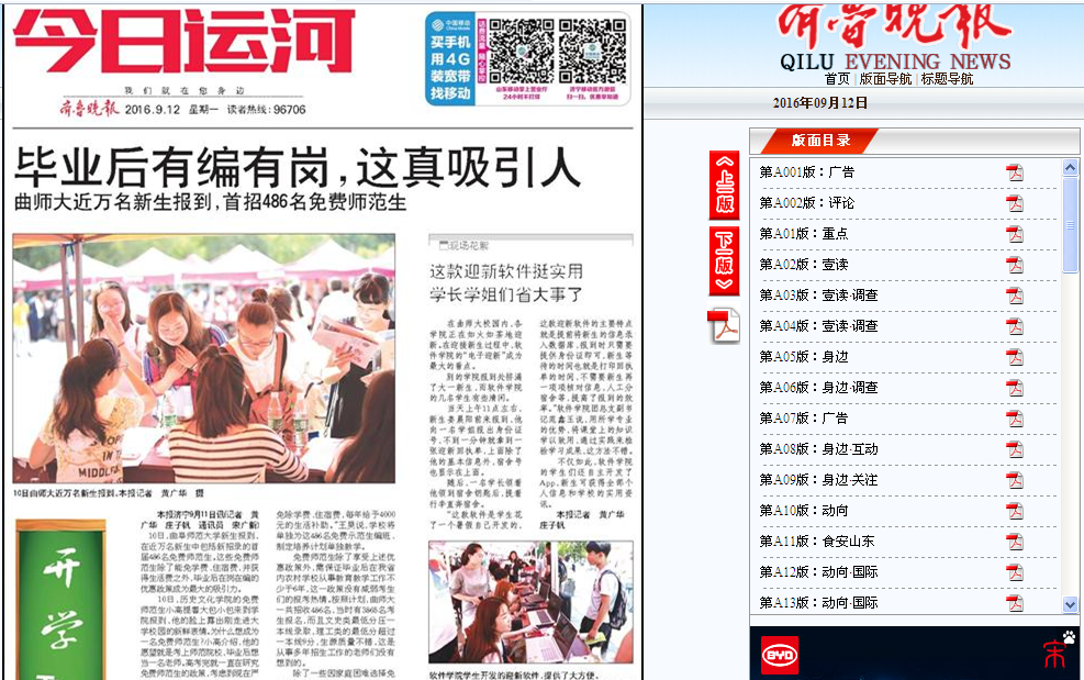 齐鲁晚报:曲师大近万名新生报到 首招486名免费师范生