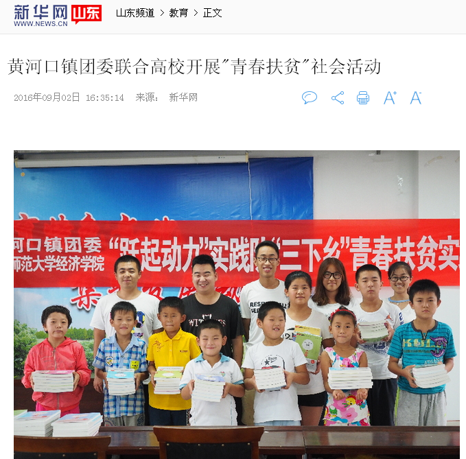 新华网:黄河口镇团委联合高校开展"青春扶贫"社会活动