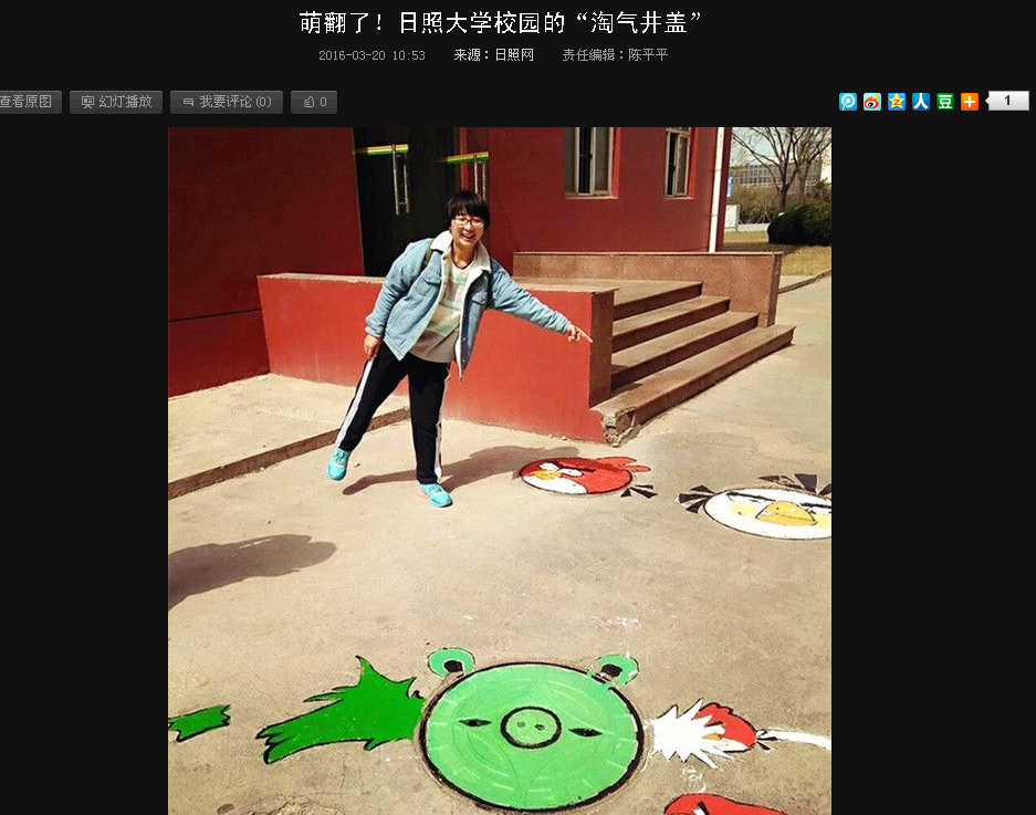 大众网:曲师大学生创意涂鸦 让井盖“说话”